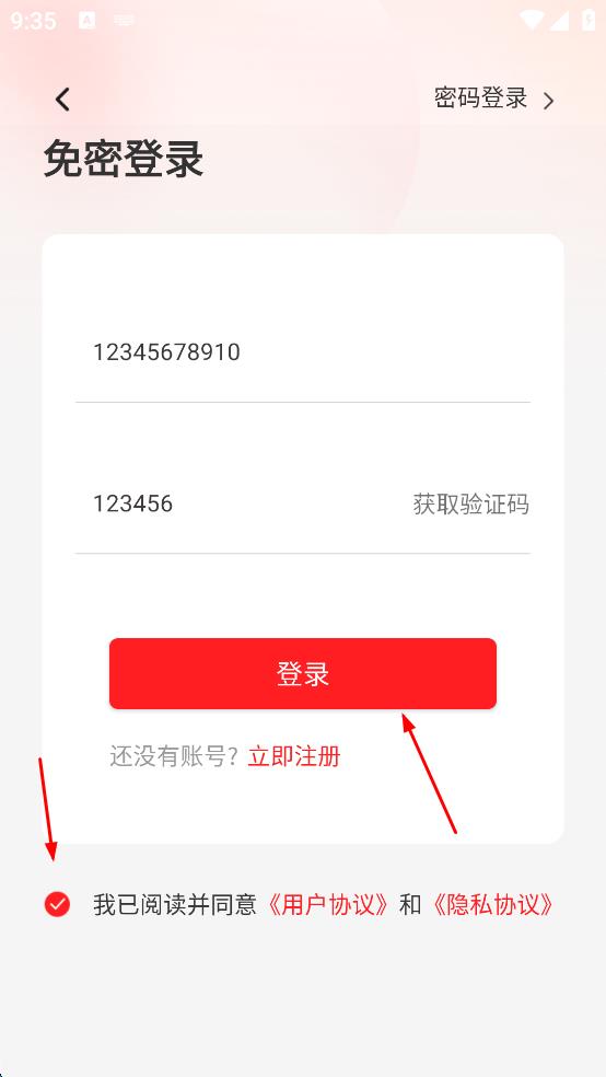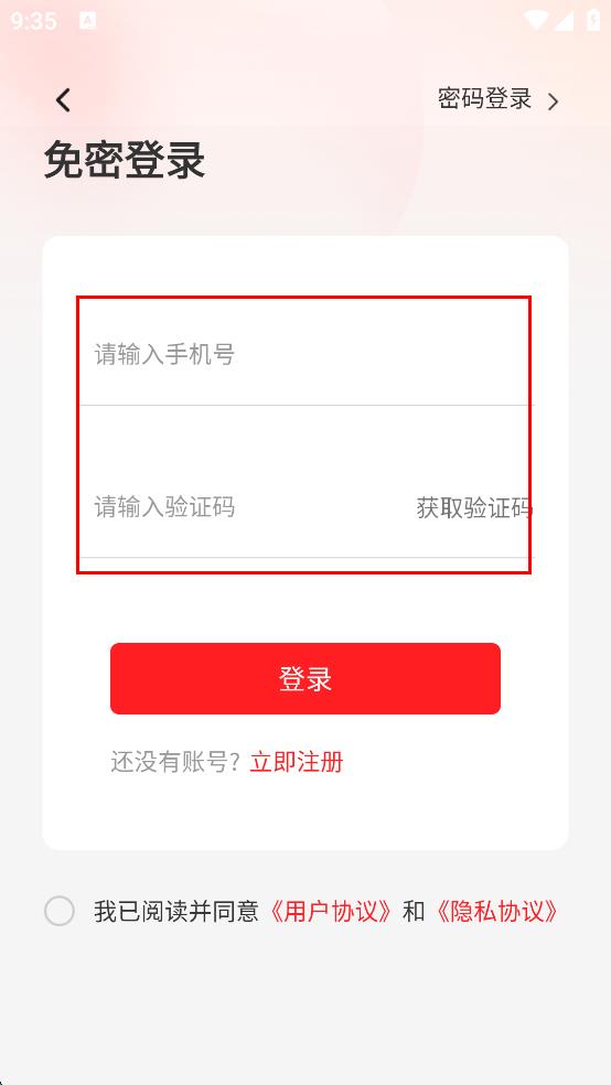 3、在登錄方式選擇頁面,選擇免密登錄,輸入手機號碼,點擊“獲取驗證碼”,然后輸入收到的驗證碼。