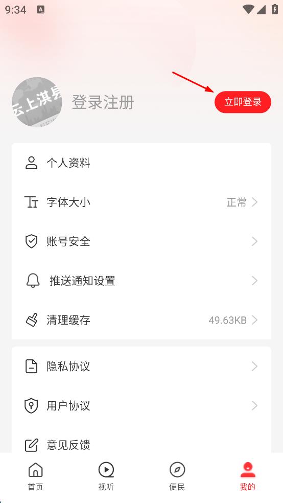 2、在個人設(shè)置頁面中,找到“立即登錄”選項并點擊,進入登錄方式選擇頁面。