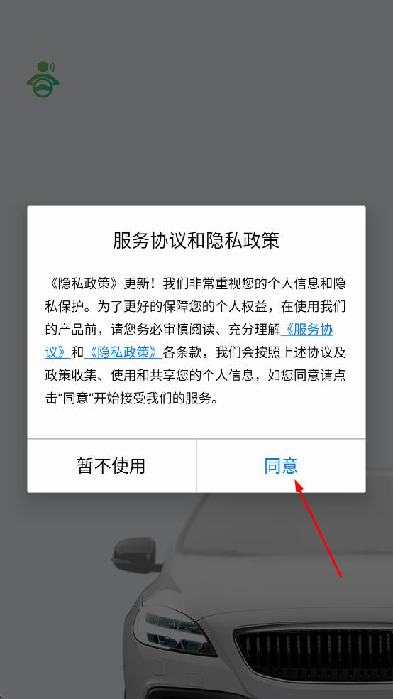 1、打開(kāi)小云,出現(xiàn)服務(wù)協(xié)議和隱私政策提示框,點(diǎn)擊同意。