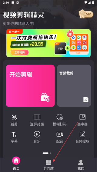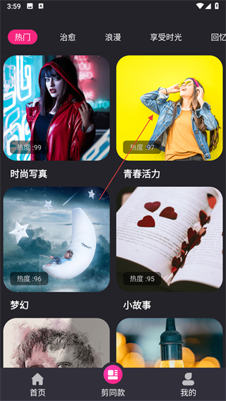 1、打開視頻剪輯精靈應(yīng)用,點擊底部導(dǎo)航欄中的剪同款選項,進(jìn)入模板選擇頁面。