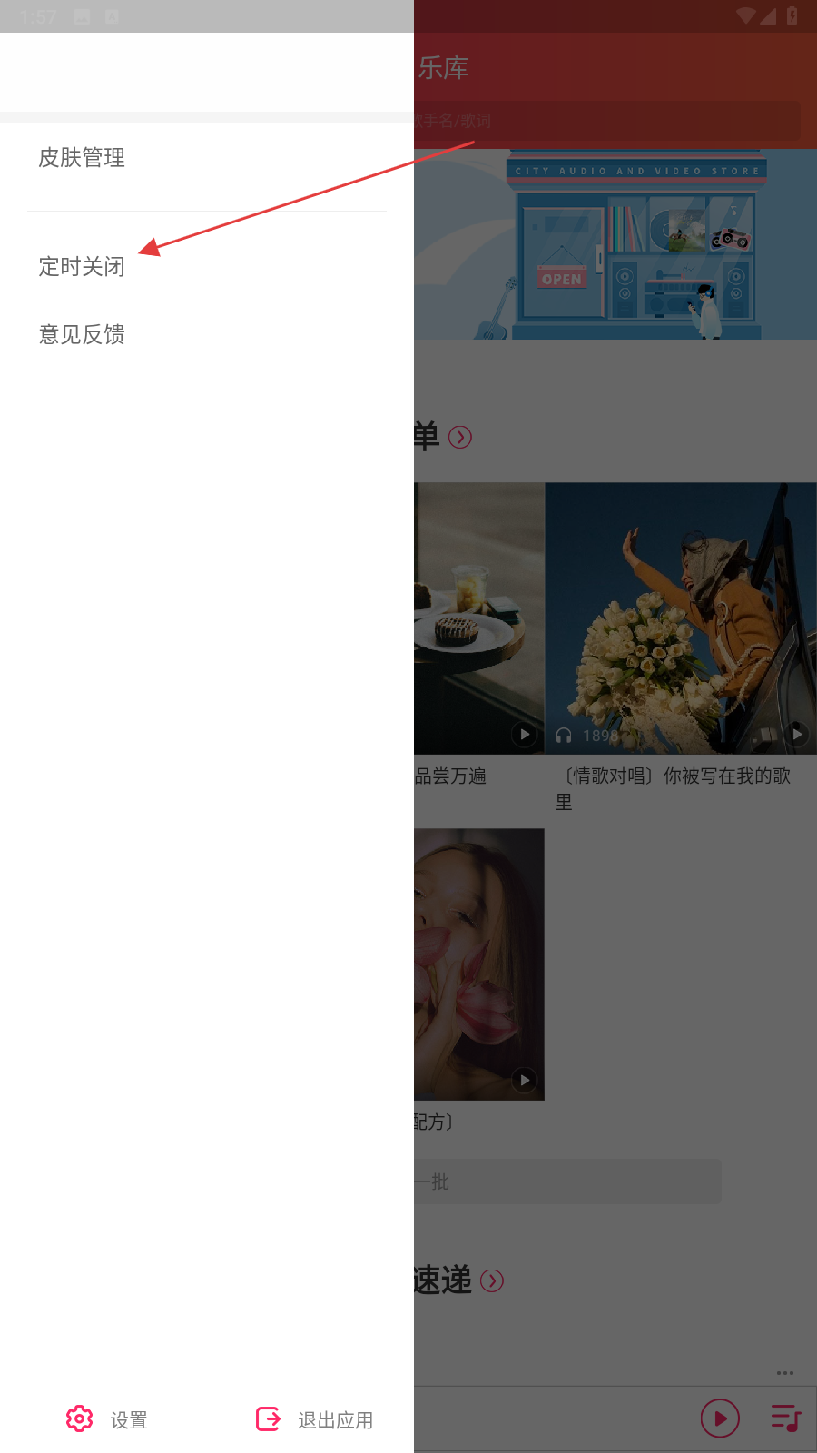 2、在左側(cè)彈出菜單欄中,點(diǎn)擊定時(shí)關(guān)閉的功能按鈕。