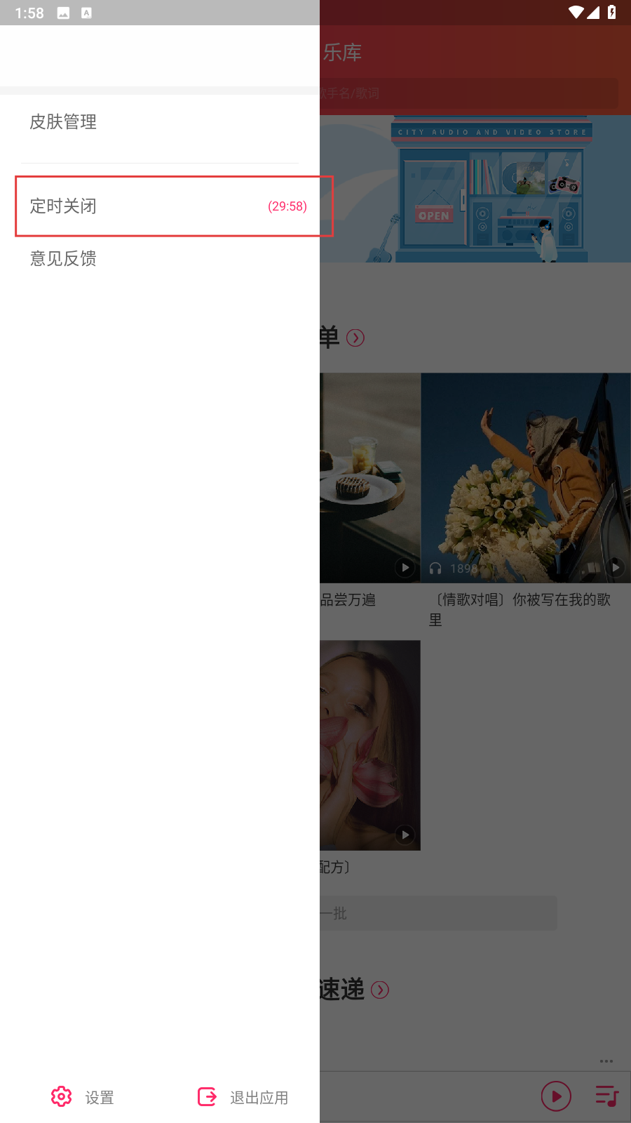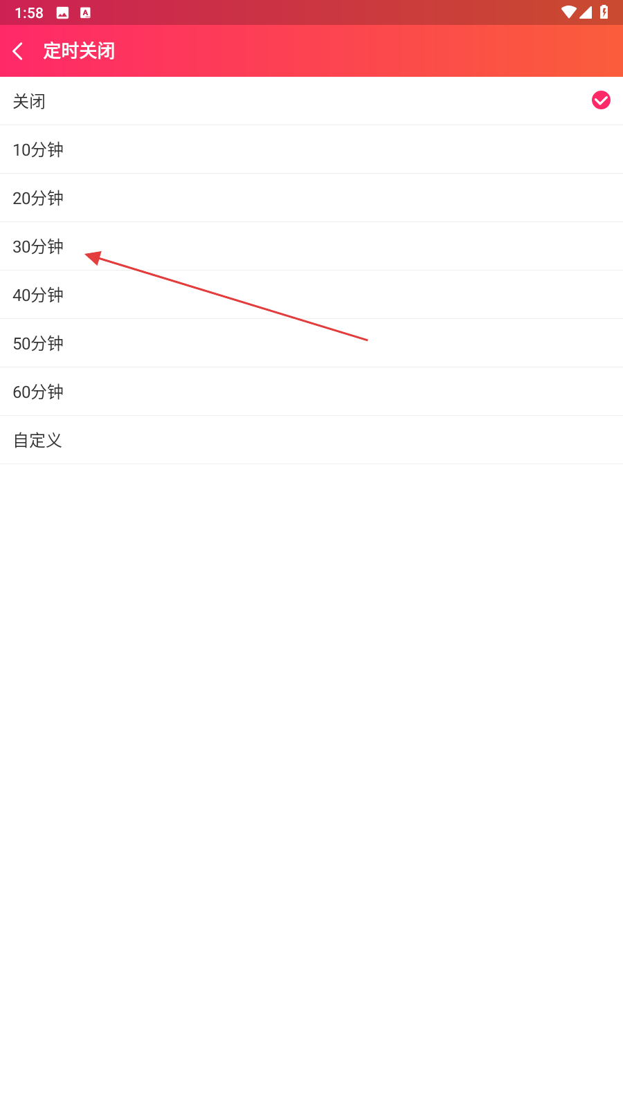 4、點(diǎn)擊后,會(huì)自動(dòng)返回該頁(yè)面內(nèi),在定時(shí)關(guān)閉的右側(cè)顯示30分鐘倒計(jì)時(shí)。