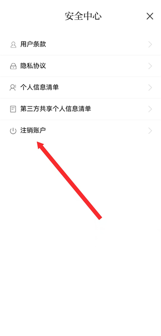 3、在安全中心的界面,需要點擊注銷賬戶,進(jìn)入注銷賬號的頁面。