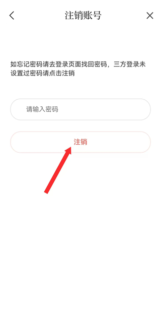 4、在注銷賬號頁面輸入密碼后,點擊注銷按鈕,完成賬號注銷操作。