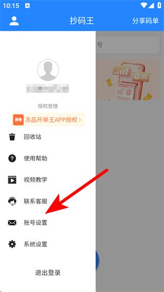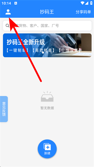 1、打開抄碼王app,點擊左上角的個人圖標,展開功能菜單。
