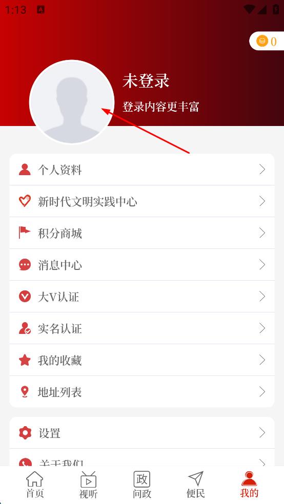 3、在個(gè)人頁(yè)面,點(diǎn)擊未登錄區(qū)域,進(jìn)入登錄頁(yè)面。
