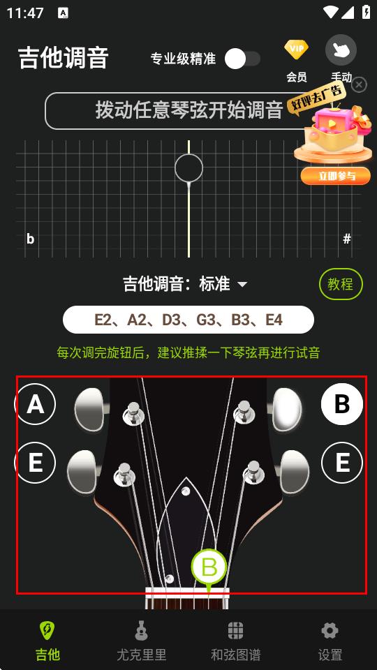 點(diǎn)擊底部按鈕可以聽(tīng)各弦示范音。