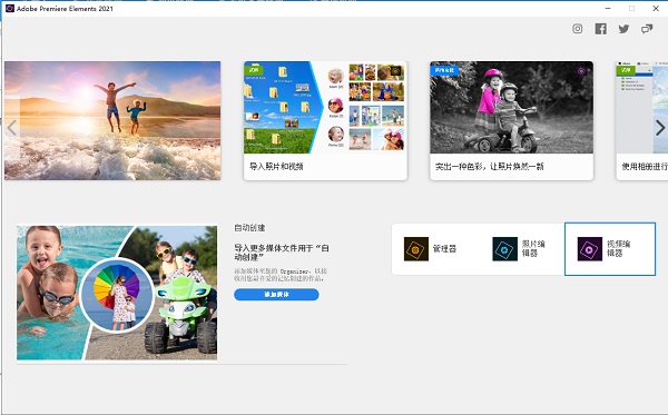 5、接下來(lái)在出現(xiàn)的頁(yè)面中選擇視頻編輯器即可進(jìn)入Premiere Elements2021,所有功能免費(fèi)使用