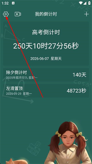 1、打開我的倒計時app,點擊左上角的設置圖標。