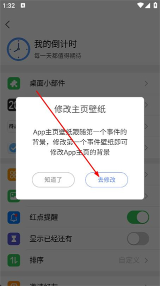 3、在彈出的修改主頁壁紙?zhí)崾究蛑?,點擊去修改按鈕。
