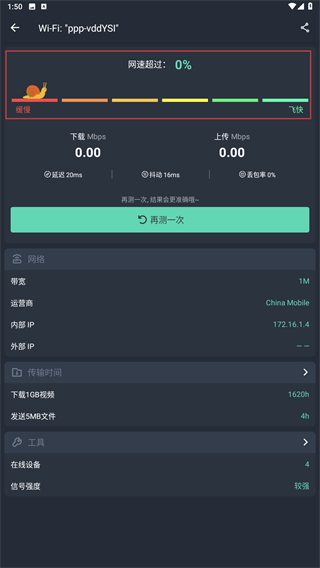 4、結(jié)束后,可在此區(qū)域查看測速的結(jié)果。