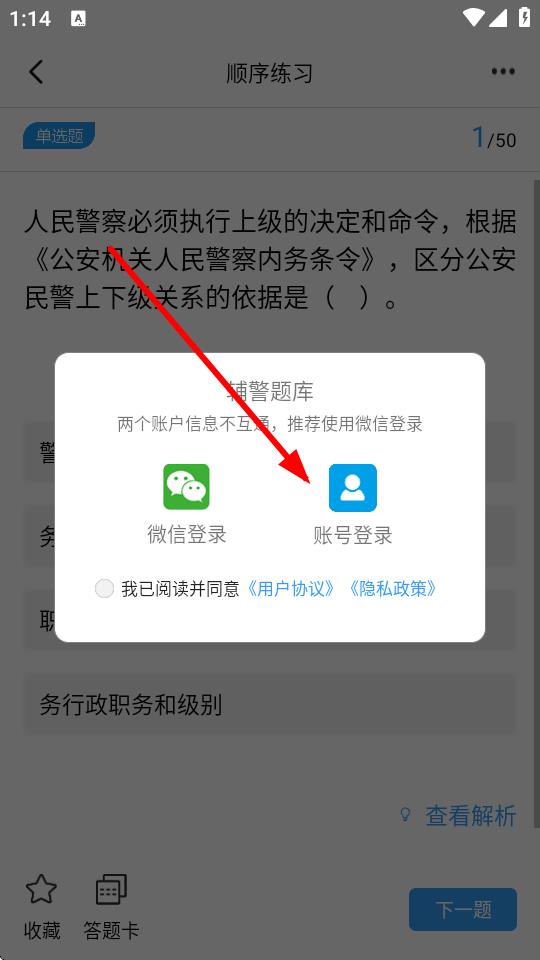 2、在順序練習(xí)試卷列表中,選擇目標(biāo)試卷,點(diǎn)擊開始做題,進(jìn)入登錄環(huán)節(jié)。