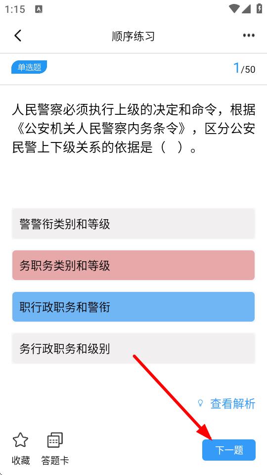 4、登錄后進(jìn)入答題界面,作答題目后點(diǎn)擊下一題,繼續(xù)答題。