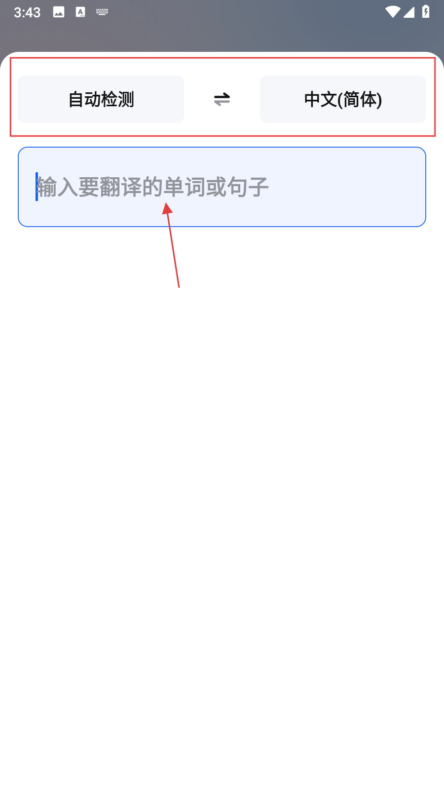 2、在輸入框上方,設(shè)置源語言和目標(biāo)語言。