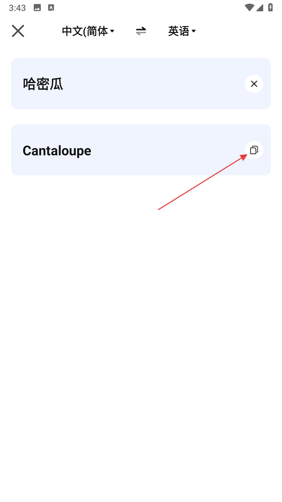 4、翻譯完成后,可看到對(duì)應(yīng)的譯文,點(diǎn)擊譯文旁的復(fù)制圖標(biāo),即可復(fù)制譯文。