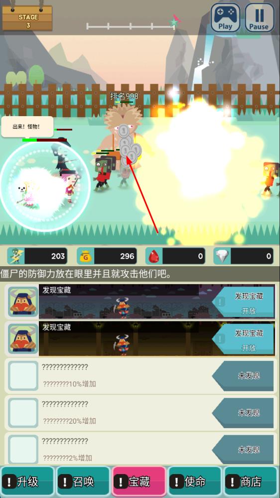 3、到第三階段,攻擊怪物時留意寶藏提示,擊敗對應怪物獲取寶藏,解鎖新功能,助力后續(xù)關卡戰(zhàn)斗 。