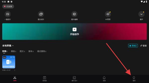 1、啟動剪映APP,在首頁內(nèi)點擊右下角我的圖標(biāo)。
