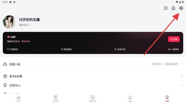 2、進入個人主頁內(nèi),點擊右上角設(shè)置的功能圖標(biāo)。