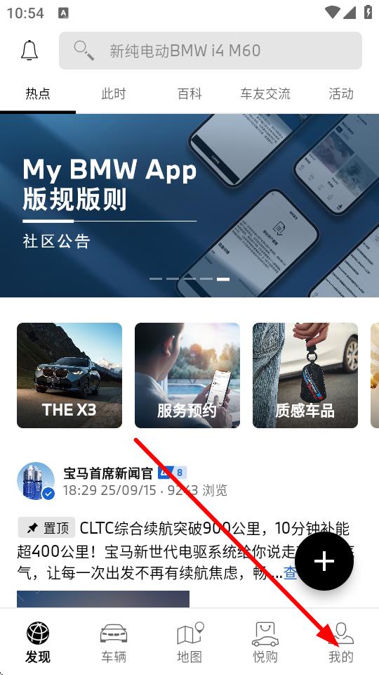 1、打開寶馬汽車app,點擊底部導(dǎo)航欄中的我的進入個人界面。