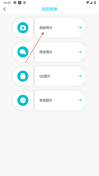 2、掃描完成后,進入選擇相冊頁面,根據(jù)需要恢復的圖片來源,點擊相冊照片選項。