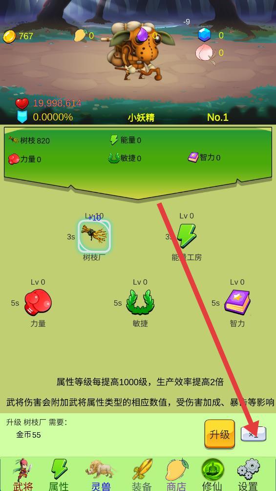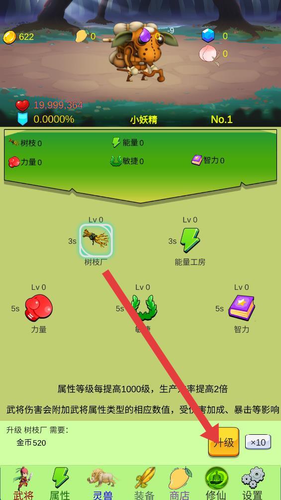 4、選擇好倍數(shù)后,點(diǎn)擊升級(jí)按鈕,即可完成屬性升級(jí)。