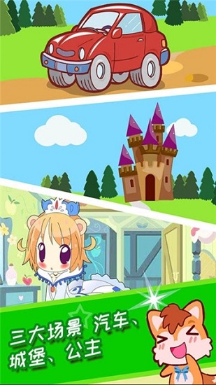 豐富內(nèi)容:擁有多個主題場景,汽車、城堡、公主等。