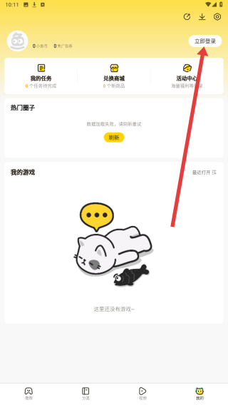 3、在摸摸魚主界面右上角,找到立即登錄按鈕并點(diǎn)擊,進(jìn)入賬號(hào)登錄頁面,準(zhǔn)備進(jìn)行登錄操作。