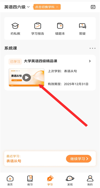 2、在學(xué)習(xí)的頁面,點(diǎn)擊目標(biāo)的課程,進(jìn)入課程詳情的頁面。