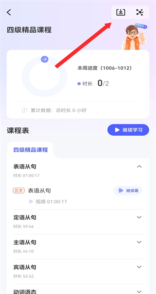 3、在課程詳情頁面,點(diǎn)擊右上角下載圖標(biāo),進(jìn)入下載課程頁面。