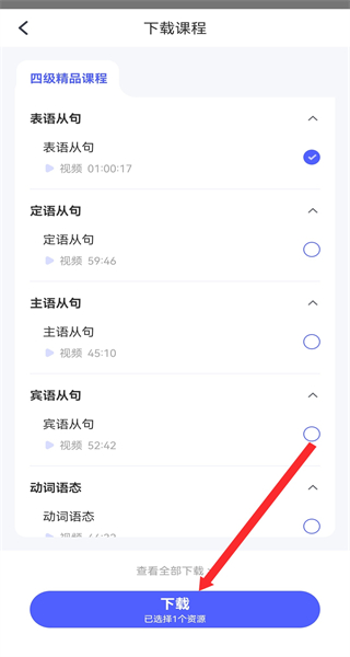 4、在下載頁面,選擇要緩存的課程章節(jié)后點(diǎn)擊下載,完成視頻緩存操作。