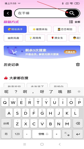 輸入對(duì)方聊天信息的關(guān)鍵詞就能在5秒內(nèi)為您匹配到您想要的精彩回答。