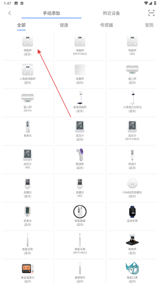 3、在手動添加設(shè)備的頁面內(nèi),選擇并點(diǎn)擊進(jìn)行添加。