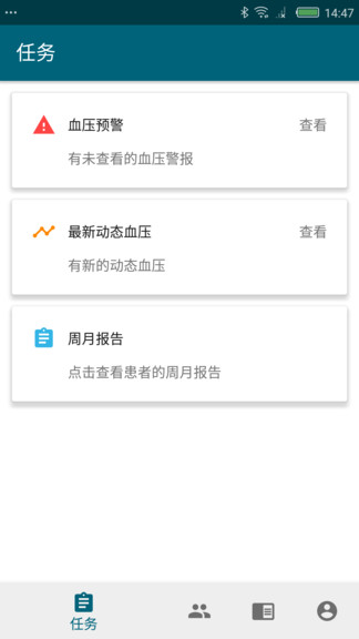 各大醫(yī)院的專業(yè)醫(yī)師可通過App及時了解綁定患者血壓的平均水平、晝夜節(jié)律、晨峰現(xiàn)象等指標(biāo),并根據(jù)各指標(biāo)做出評估,及時調(diào)整治療方案,有效的控制和管理血壓。同時,該系統(tǒng)還具有預(yù)警功能,一旦血壓過高,專業(yè)的醫(yī)務(wù)團(tuán)隊將及時給用戶電話詢問情況并指導(dǎo),讓高血壓患者足不出門就可以得到專業(yè)指導(dǎo)和幫助,必要時還可直接去問診醫(yī)生所在醫(yī)院就診,有利于醫(yī)生患者互動共同控制高血壓。