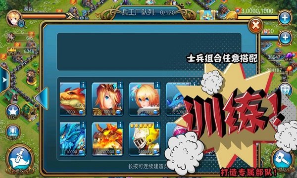 強者不甘平凡!組建起強大的公會,討伐遠處的邪惡勢力!捐獻自己的士兵,由公會的勇士前去討伐。二百余遠征地點,有近海有遠洋,在近海,每一個公會都可以輕松的獲得資源儲備,而公會的所有儲備每一位會員都可以取出!如果您的公會足夠強大,那一定要來遠洋試一試,這將會讓您的公會聲名遠揚!