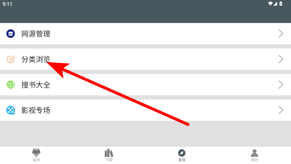 2、在發(fā)現(xiàn)頁(yè)面,點(diǎn)擊分類瀏覽選項(xiàng),進(jìn)入分類界面。