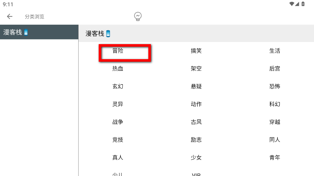 3、在分類界面,選擇想要瀏覽的書(shū)籍分類,比如冒險(xiǎn)。