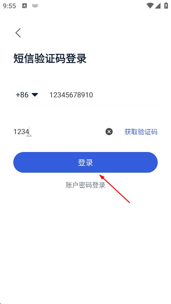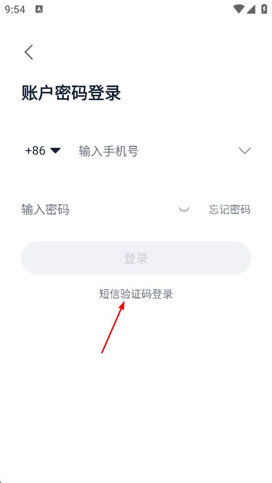 2、在賬戶密碼登錄界面中,點擊“短信驗證碼登錄”,切換到短信驗證碼登錄頁面。