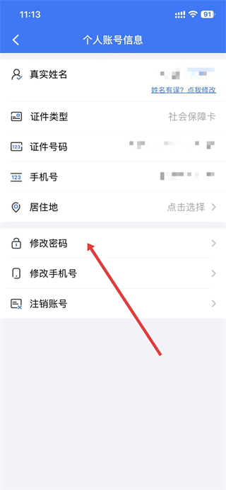 3、進(jìn)入個(gè)人賬號(hào)信息頁(yè)面后,找到并點(diǎn)擊修改密碼選項(xiàng)。