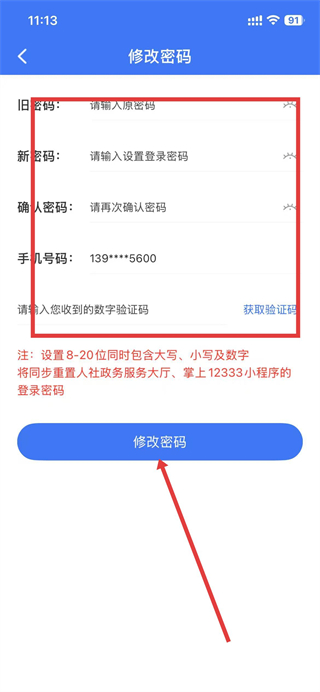 4、根據(jù)要求填寫(xiě)信息,點(diǎn)擊修改密碼,即可完成密碼修改。