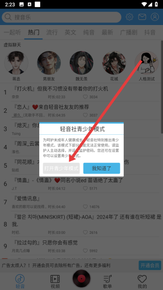 1、在進(jìn)入到App后,可以點(diǎn)擊打開青少年模式按鈕,準(zhǔn)備進(jìn)行開啟操作。