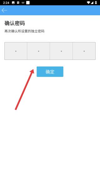 4、在確認(rèn)密碼頁面中,再次輸入設(shè)置的密碼后點(diǎn)擊確定,完成開啟青少年模式。