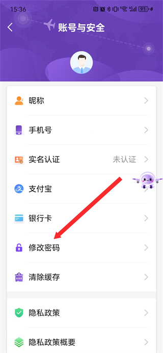 2、在賬號(hào)與安全頁(yè)面,點(diǎn)擊修改密碼,進(jìn)入修改密碼驗(yàn)證環(huán)節(jié)。