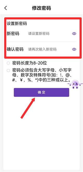 4、設(shè)置新密碼并確認(rèn)后,點(diǎn)擊確定,完成密碼修改的操作。