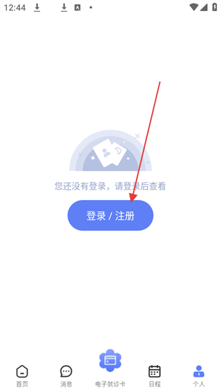 2、在個人頁面中,點擊登錄/注冊按鈕。