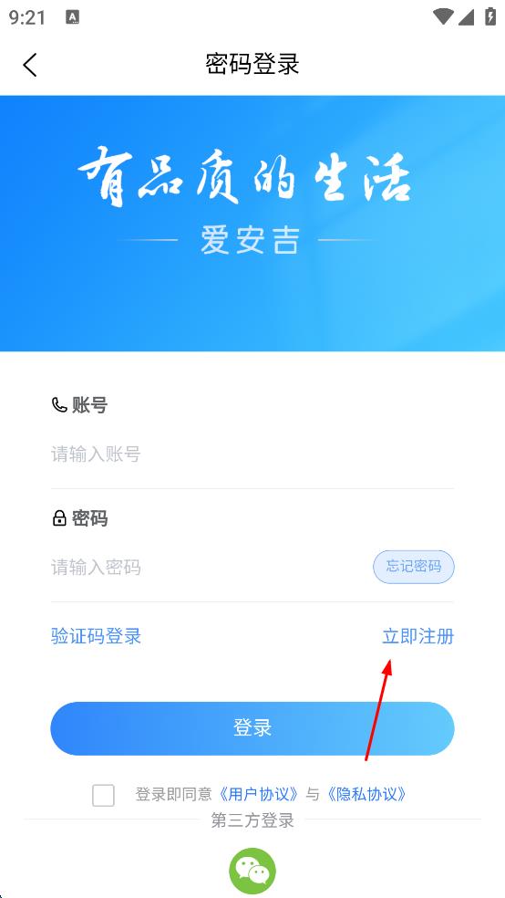 3、在登錄頁(yè)面,找到“立即注冊(cè)”按鈕并點(diǎn)擊,進(jìn)入注冊(cè)界面。