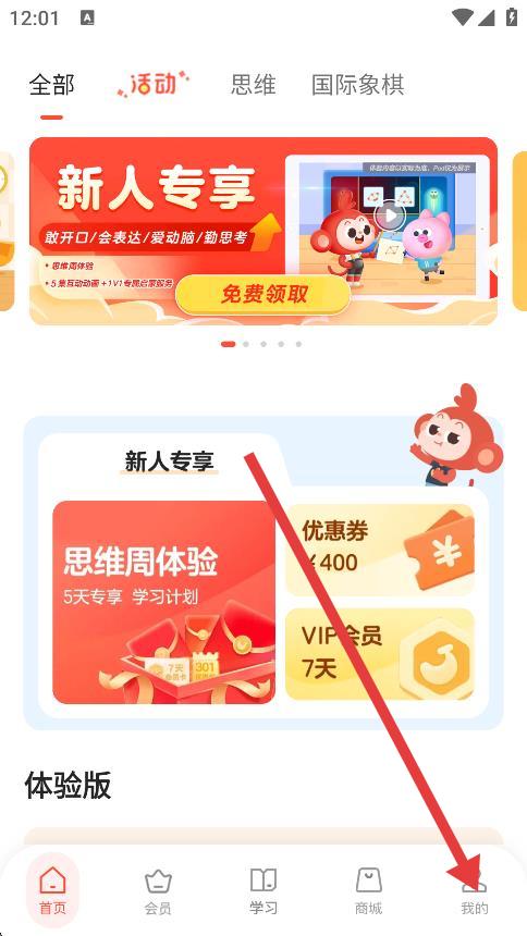 1、打開(kāi)學(xué)而思小猴語(yǔ)文app,點(diǎn)擊底部導(dǎo)航欄我的選項(xiàng)。