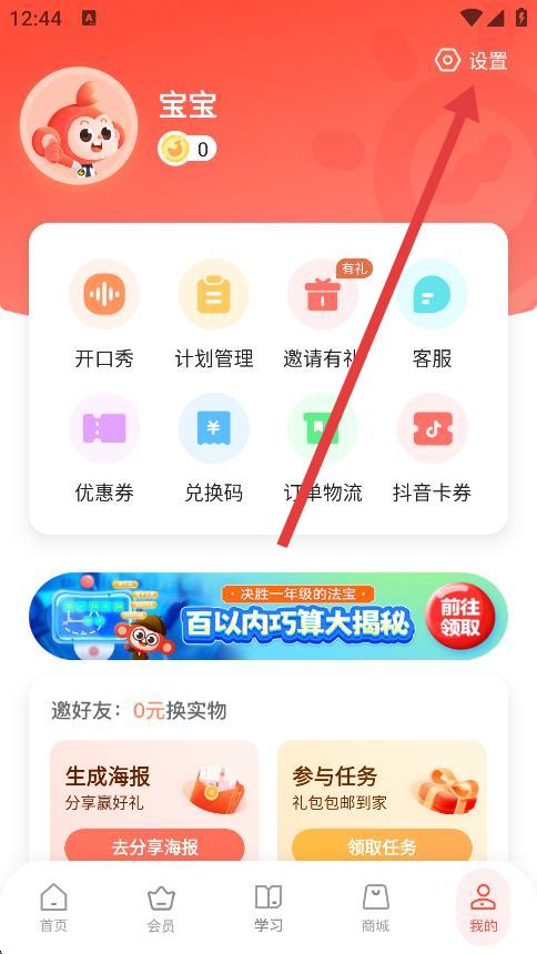 2、在我的頁(yè)面右上角,點(diǎn)擊設(shè)置圖標(biāo),進(jìn)入設(shè)置界面。