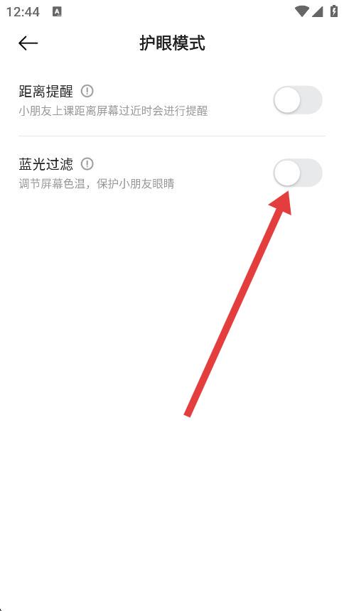 4、找到藍(lán)光過(guò)濾選項(xiàng),點(diǎn)擊開(kāi)關(guān)按鈕將其開(kāi)啟,即可開(kāi)啟護(hù)眼。