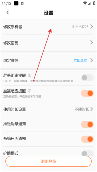 3、進(jìn)入設(shè)置頁面后,點擊修改手機(jī)號選項。