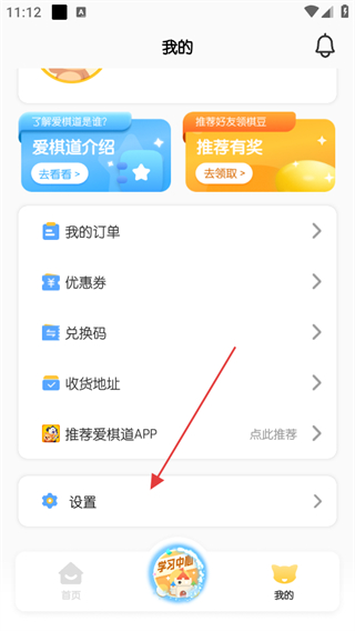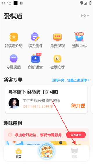 1、打開愛棋道圍棋app,點擊底部導(dǎo)航欄中的我的選項。